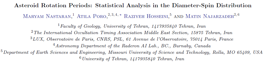 A new research article on asteroid rotational characteristics, conducted by researchers from IOTA/ME, has been accepted for publication in Astrophysics and is now available on ArXiv: